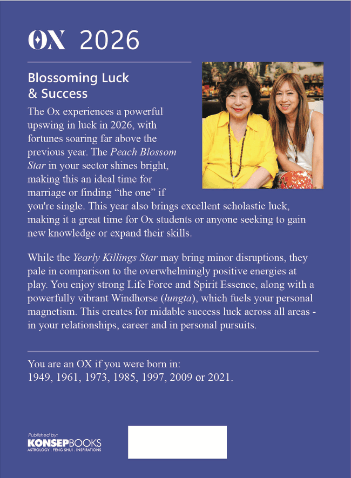2026 is a year of blossoming luck for the Ox, with powerful stars lifting fortunes higher than before. The Peach Blossom Star lights up relationships and opportunities, making this an ideal time to attract love, expand friendships, or strengthen partnerships. Students and lifelong learners will also find doors opening for knowledge and growth.