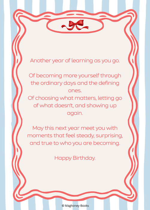 Inside is a longer note reflecting on growth, learning, and becoming—through both ordinary and defining days.